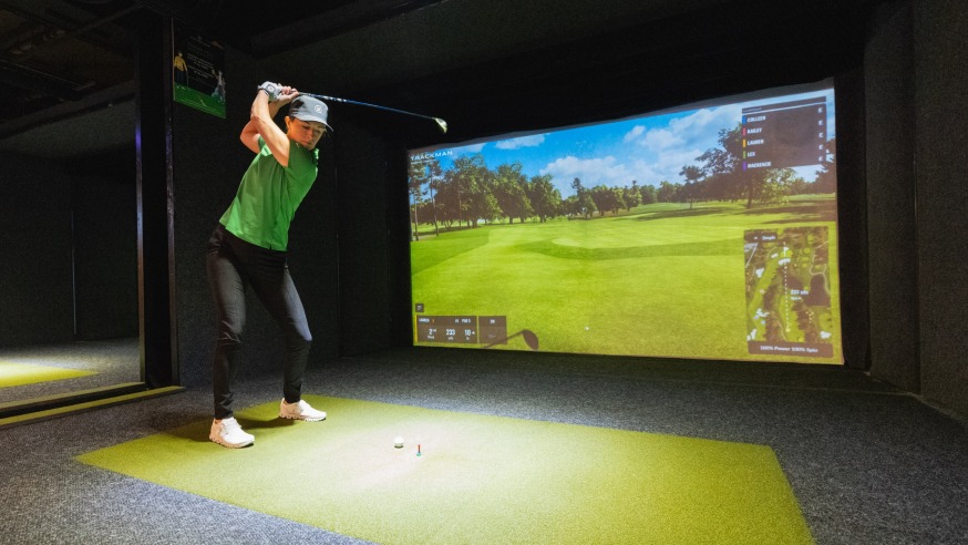 A player using a golf simulator at a Five Iron Golf facility (Photo provided by Knight Eady)