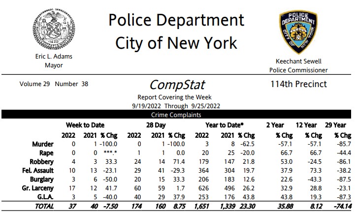 For instance, in the 114th Precinct, which covers much of Cabán’s district, overall crime is up 23.3 percent compared to the same period last year. However, murders are down 62.5 percent and rapes are down 20 percent in her district.