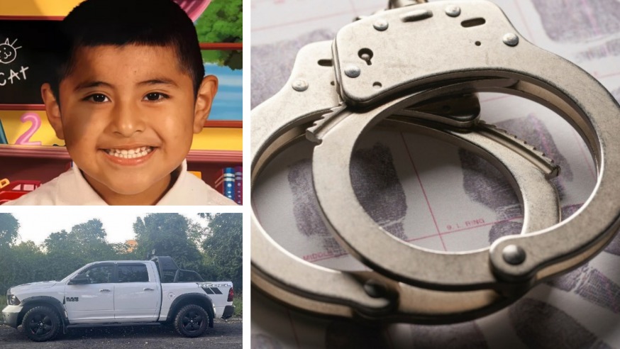An Astoria man has been charged with criminally negligent homicide for a hit-and-run crash that killed 5-year-old Jonathan Martinez, pictured, in East Elmhurst last month. The driver was in a white pickup truck (Photos: GoFundMe, NYPD and Unsplash)