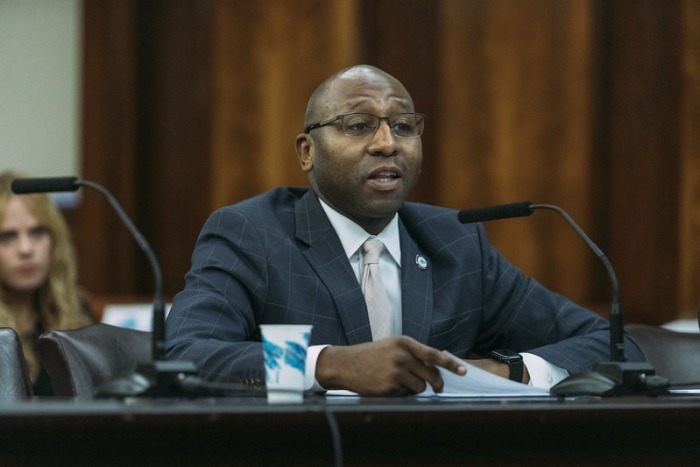 Queens Borough President Donovan Richards testifying at the Committee on Zoning and Franchises hearing Wednesday (Emil Cohen/NYC Council Media Unit)