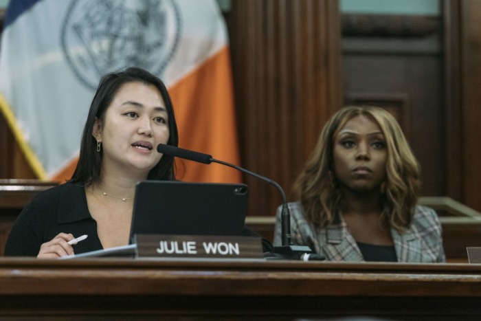 Councilmember Julie Won testifying at the Committee on Zoning and Franchises hearing Wednesday (Emil Cohen/NYC Council Media Unit)
