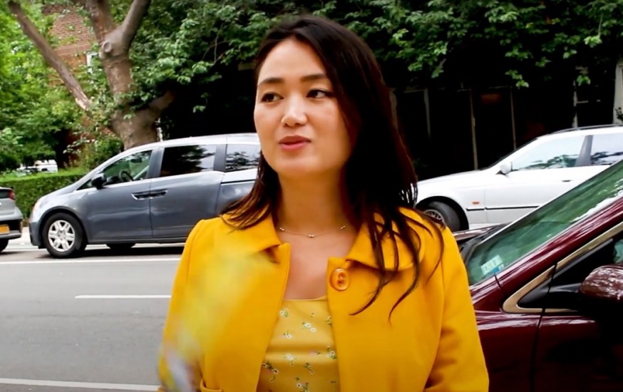 Julie Won out campaigning. Screenshot from District 26: A New York Election Story