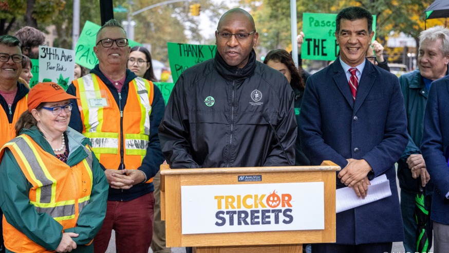 The initiative, a concept that was proposed by Mayor Eric Adams, was announced by DOT Commissioner Ydanis Rodriguez at an Open Streets ribbon-cutting event at Jackson Heights on Monday.