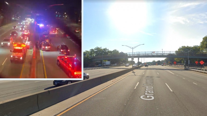 A pedestrian is dead after he was struck by a BMW on the Grand Central Parkway in Astoria Heights Monday (Photos: Citizen and Google Maps)
