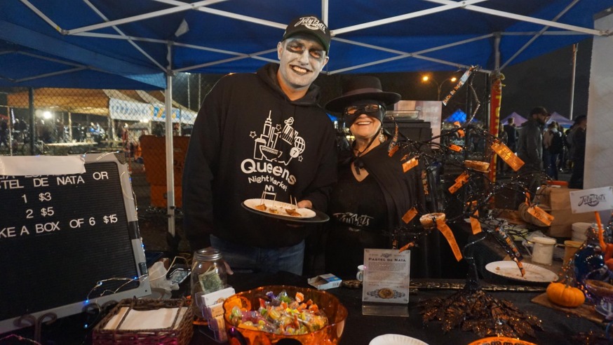 The Queens Night Market will end for the year Saturday and organizers are hosting a Halloween-themed day of events to mark the occasion. Vendors at a previous Queens Night Market Halloween event (Photo by Sharon Medina, Queens Night Market)