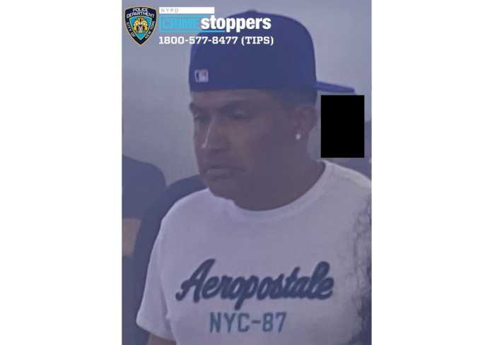 Police from the 115th Precinct in Jackson Heights are on the lookout for the suspect, who is described as having a light complexion and medium build. He was wearing a red Champion hoodie, a black baseball cap, black pants and white sneakers.