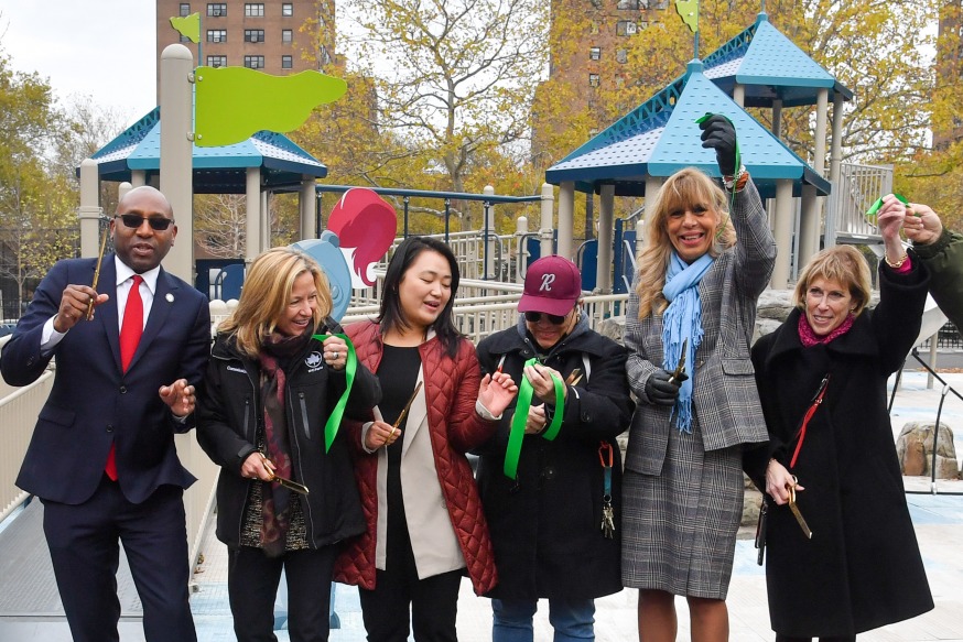 The Parks Dept. has completed a $7.1 million revamp of Ravenswood Playground in Astoria and officials held a ribbon-cutting event there Tuesday (Photo: Daniel Avila via Parks Dept.)