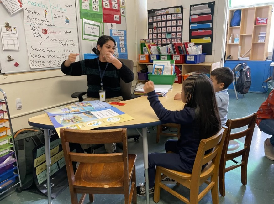 Then some teachers started leaning on students who were fluent in both English and Spanish to buddy up with the newcomers to help translate. But the bilingual classmates found themselves missing most of the lesson trying to help out their peers.