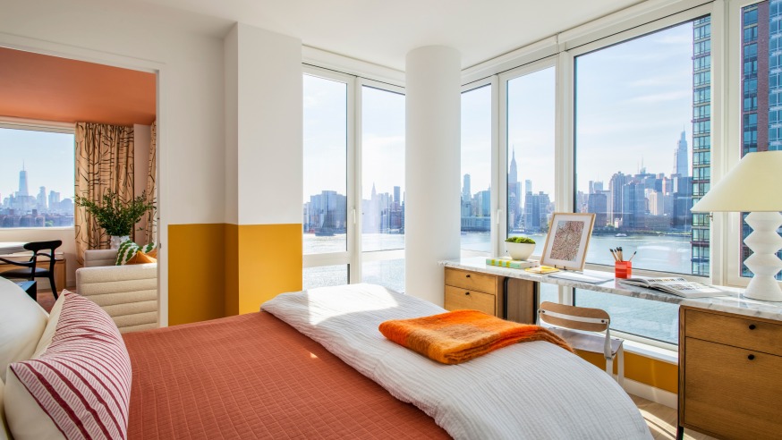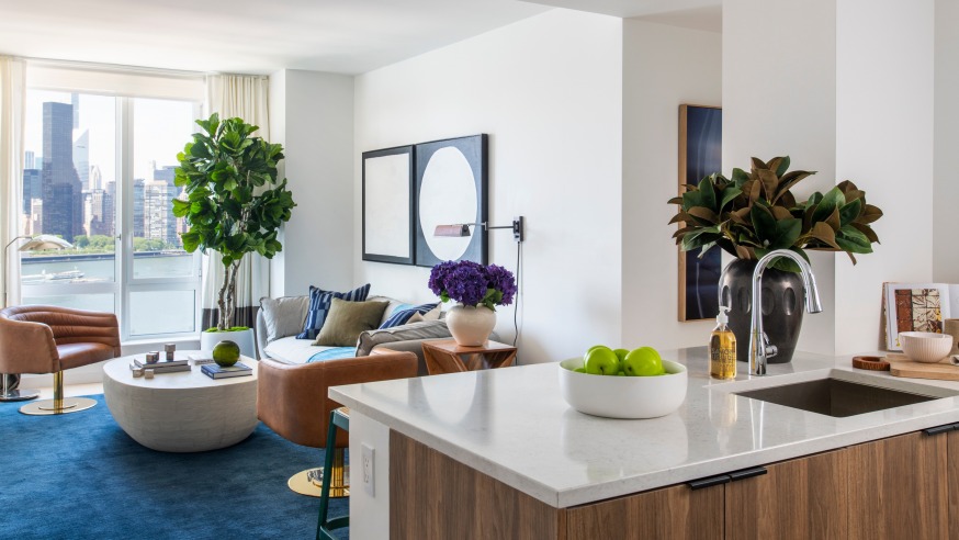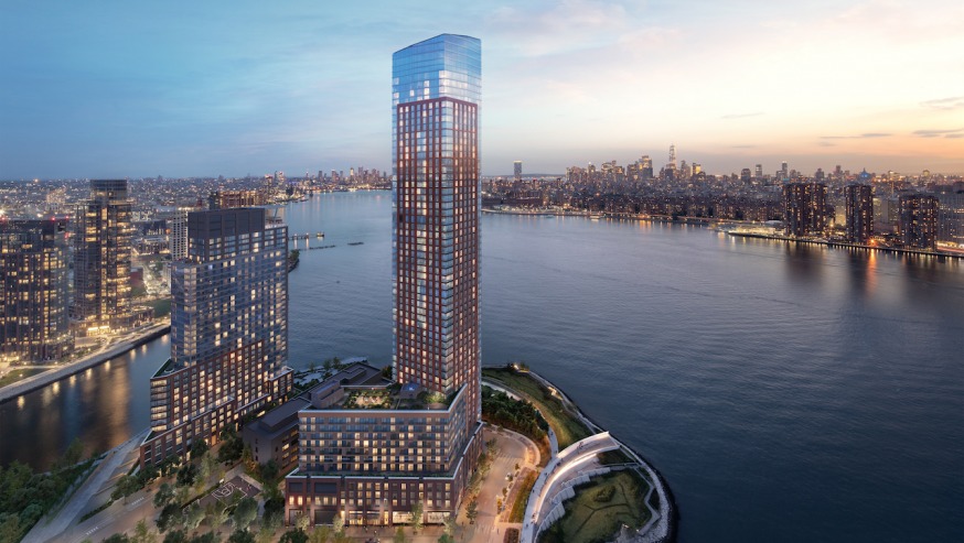 The two-tower project, designed by Handel Architects, features 24-hour attended lobbies, a rooftop terrace with city views, resident lounges and sundecks, a state-of-the-art indoor and outdoor fitness club, a children’s playroom and a publicly accessible urban rooftop farm and community boathouse.