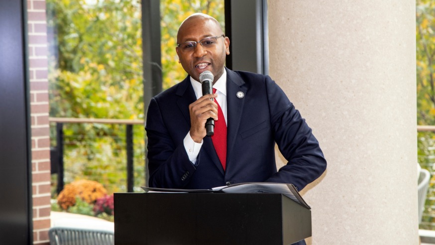 David Picket, CEO of Gotham Organization, speaking at the ribbon-cutting event (Photo by Ed Lederman)