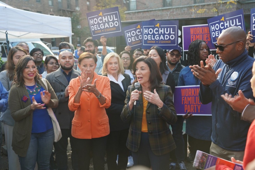 Governor Kathy Hochul held a campaign rally in Sunnyside Saturday and was accompanied by a large contingent of Queens elected officials.