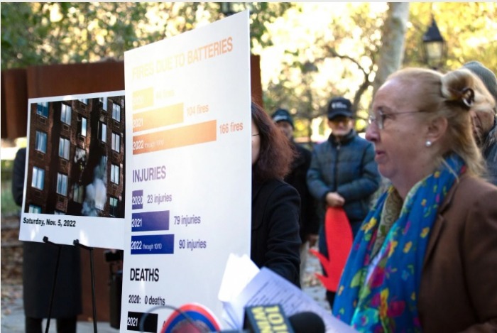 As for Albany, State Senator Liz Krueger recently announced two bills to address the rising number of fires caused by lithium-ion batteries. Like the City Council bills, Krueger’s legislation would ban the sale of batteries that aren’t tested by labs like UL Solutions and outlaw the secondary market in reconditioned and used lithium-ion batteries. Both bills allow for fines that could reach up to $1,000 per offense.