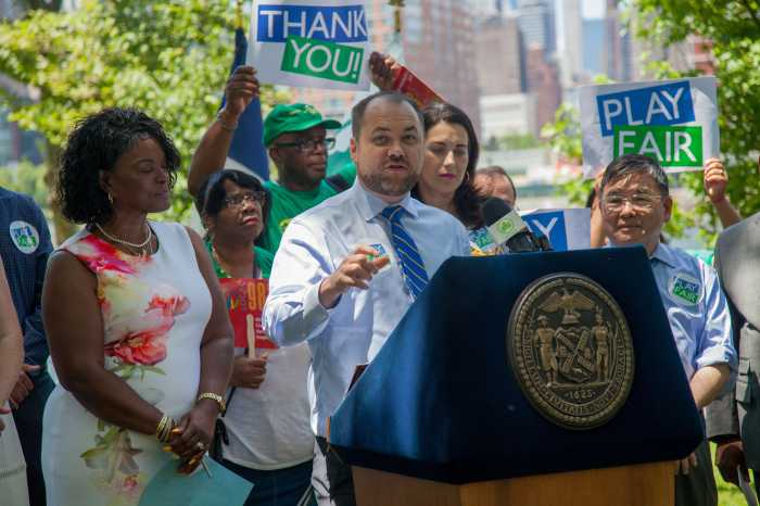 The event also marked a special occasion as school construction was recently completed and the awning and scaffolding were finally removed. Now the building is on full display. Special guests included Councilman Shekar Krishnan; Adam Ganser, NY4P’s executive director; Sherrise Palomino, director of advocacy and programs; and James Leahy from Community School District 24.