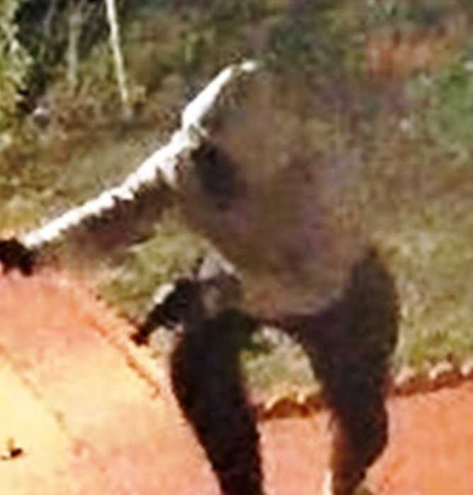 Police released a video of the suspect walking along an unidentified street. He can be seen wearing a black winter jacket with a fur hood, blue jeans, and white shoes.