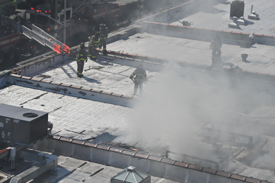 “We arrived at 10:15 and firefighting units encountered heavy fire. It’s going to be extended operation due to the amount of stock that is in this warehouse,” FDNY Chief Chuck Downey said. “The warehouse is stacked from floor to ceiling with portable air conditioning units. So we [are continuing] to put pockets of fire out at this time.”