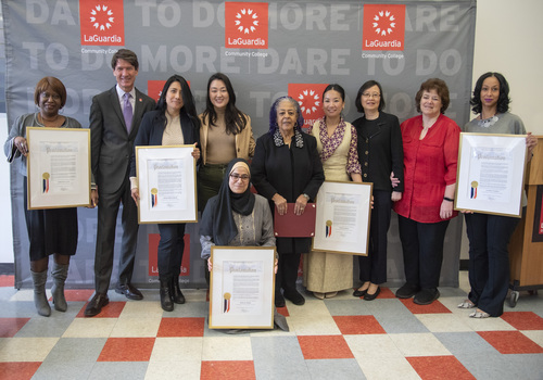 LaGuardia Community College President Kenneth Adams and Councilwoman Julie Won co-hosted a special event at the Long Island City campus on March 24 in honor of Women’s History Month in which eight women from western Queens were recognized for their dedication, commitment to community service and hard work.