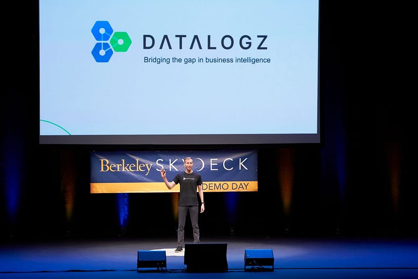 Datalogz CEO Logan Havern Presenting at Berkeley SkyDeck’s Demo Day on September 27, 2022. (Courtesy of Datalogz)