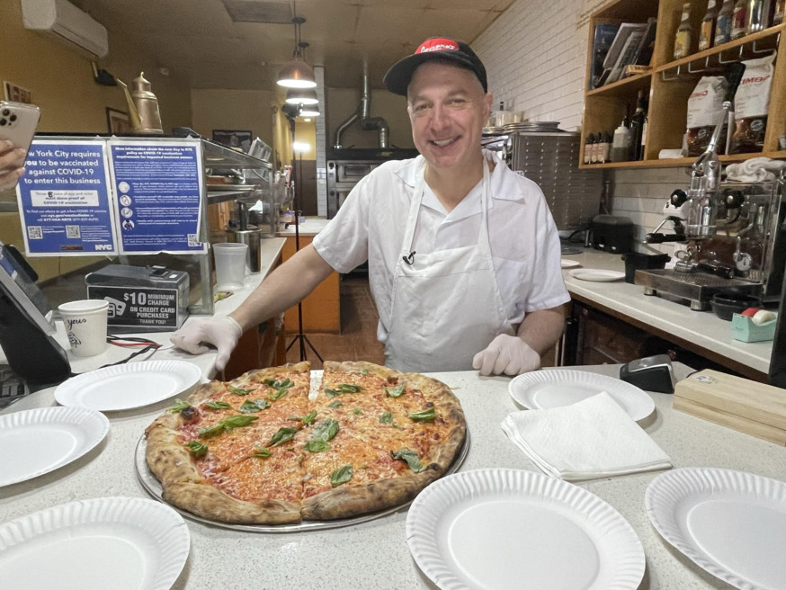 Pizza-maker Dave Acocella met Kenny Bollwerk during a livestream of the social media creator’s New York City walking tour on TikTok, back in April 2022. While Bollwerk was riding the No. 7 train and sharing his adventures with his followers – showing them how to get from Queens to Midtown Manhattan, in a video called “How to take the subway to Times Square” – Acocella, who owns Philomena’s Pizza at 41-16 Queens Blvd., in Sunnyside, happened to be watching the video and invited the TikToker to stop by.