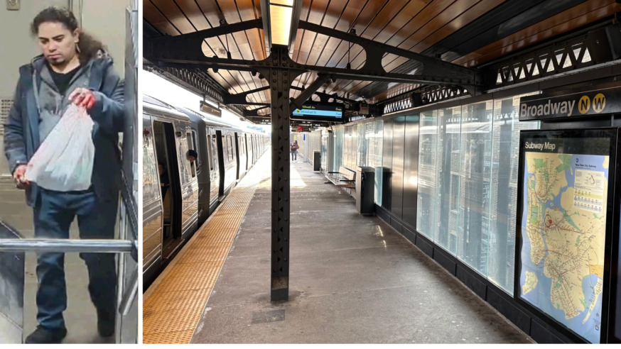 Police have released photos of a suspect wanted for stabbing and punching a straphanger at an Astoria subway station last month (Photos: NYPD and Michael Dorgan)