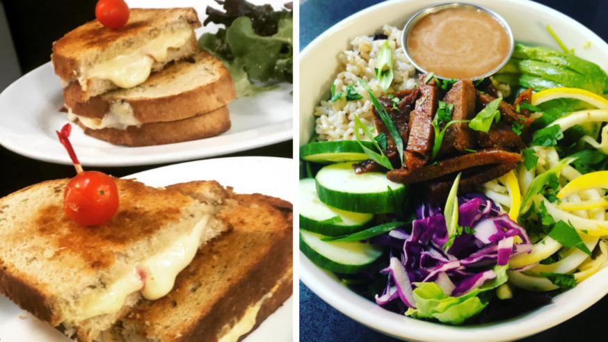 A grilled cheese panini (L) and a Filipino-inspired Buddha bowl on the menu at Communitea Café (Photos via Instagram)