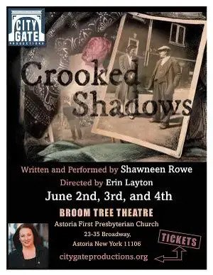 City Gate Productions will be performing Shawneen Rowe’s one-woman play “Crooked Shadows” at the Broom Tree Theatre in Astoria First Presbyterian Church from June 2-4.