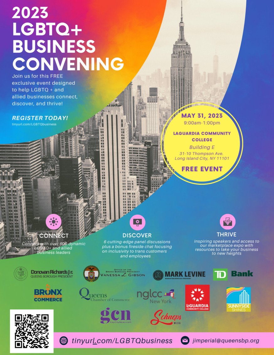 The 2023 Queens LGBTQ+ Business Convening is set to bring together over 600 business professionals and entrepreneurs from across New York City at LaGuardia Community College on Wednesday, May 31.