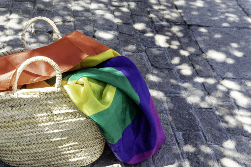 LGBT rainbow flag in a wicker basket. (Photo via Getty images)