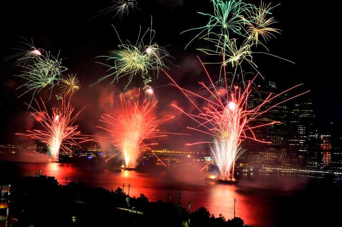 Queens residents got a head start in celebrating America’s independence with a pyrotechnic extravaganza at the Bayside waterfront in Fort Totten Park on June 27.