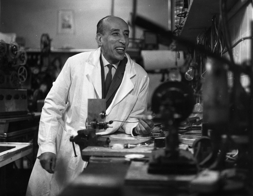 José Val del Omar in one of his laboratories. (Photo courtesy of the Val del Omar Archive)