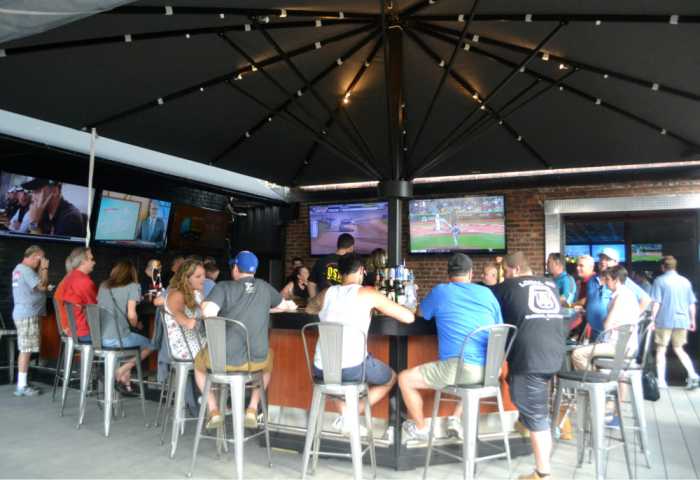 The high-top table faces out onto Jackson Avenue(Photo by Michael Dorgan)