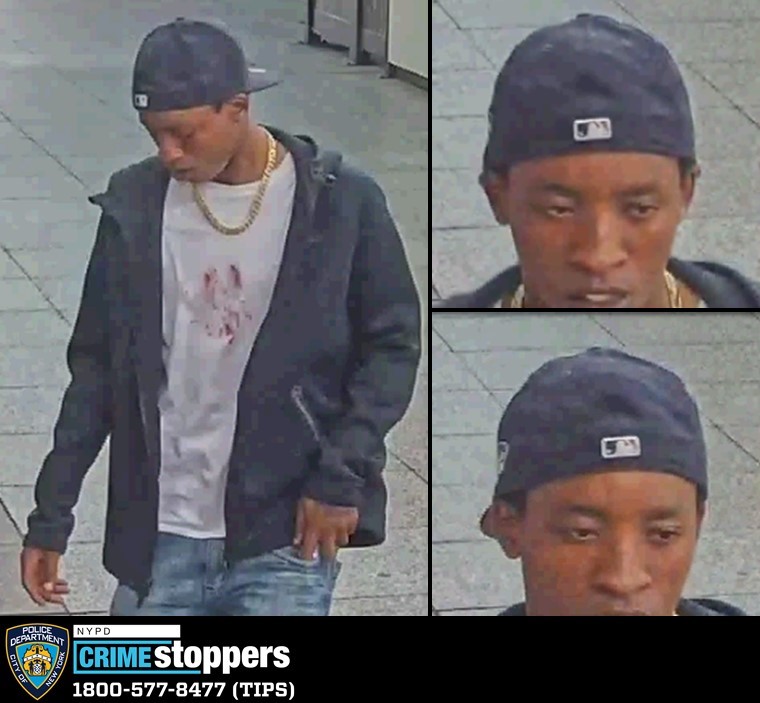 The NYPD released surveillance images of the suspect on Aug. 1 and described him as having a medium complexion. He was last seen wearing a dark hooded sweatshirt over a gray T-shirt and blue jeans, police said. He was wearing a blue baseball cap backwards and had a gold chain hanging from his neck.