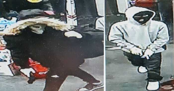 According to police, the two suspects removed numerous Plan-B and Nicorette products before fleeing the scene. One of the perpetrators can be seen holding what appears to be a laundry bag in a photo shared by police.