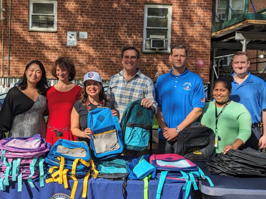 A group of western Queens lawmakers handed out free backpacks to children at the NYCHA Woodside Houses last week to help them get ready for the first day of class on Sept. 7.