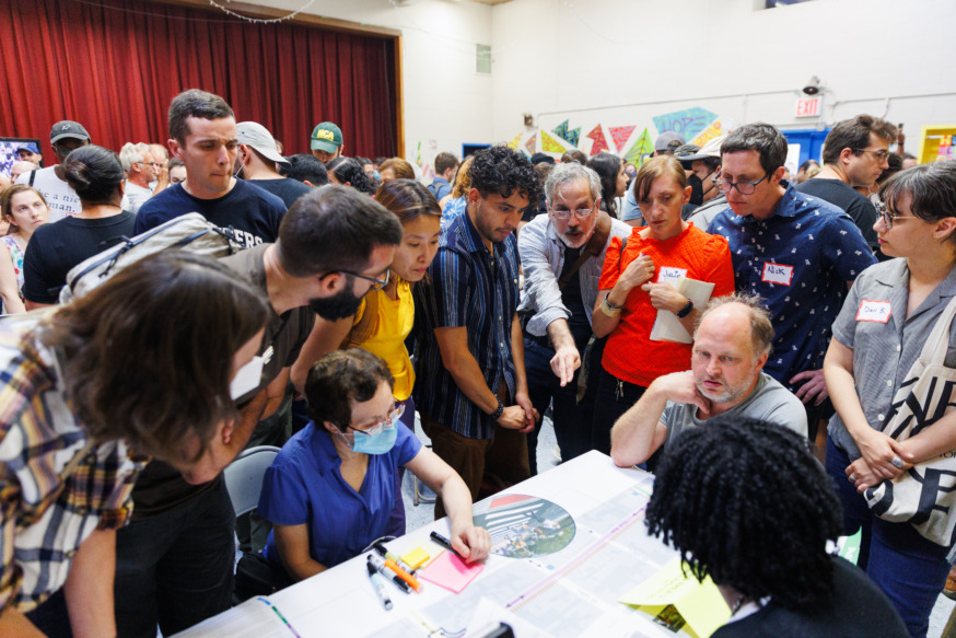 It was standing room only at a DOT workshop in Astoria, where residents gave feedback regarding an alarming surge in traffic violence across the neighborhood. (Photo by Paul Frangipane)