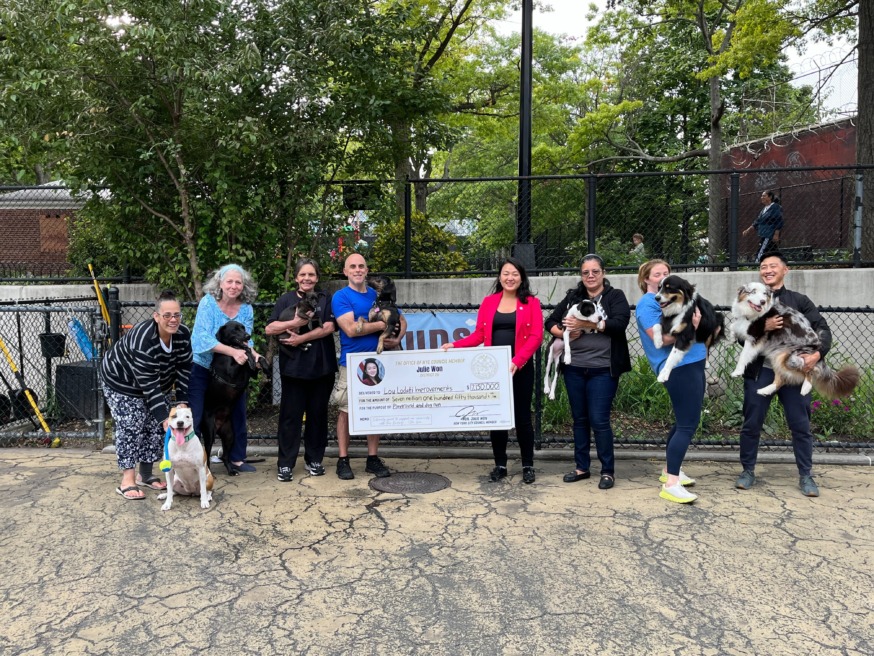 During the announcement, Won was accompanied by members of the Sunnyside United Dog Society (SUDS). Formed in 2001, SUDS consists of a group of Sunnyside canine owners who are regular patrons of the park. Their relentless advocacy led to the creation of the park’s dog run in 2013, which, after 10 years in service, is in need of a revamp.