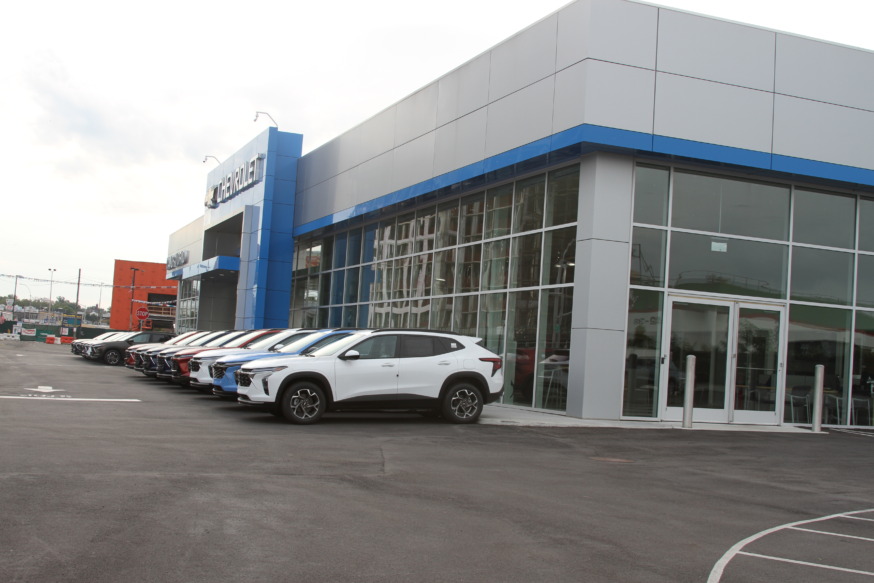 The new showroom is much larger than its previous building and houses the dealership’s main offices and car preparation area. The facility is being used as a Chevrolet dealership and the latest Chevrolet models are now on display.