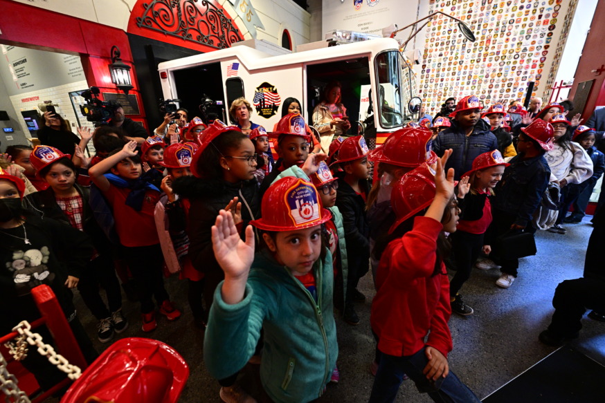 Elementary school students from P.S. 234 in Astoria were sworn in as junior firefighters and EMTs at the FDNY Fire Zone in Manhattan to kick off National Fire Prevention Week on Oct. 10.