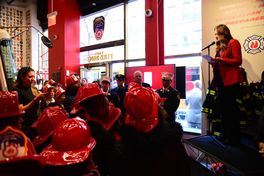 FDNY Commissioner Laura Kavanagh presented the children with the Chief William F. Feehan Fire Safety Education Award given annually to a New York City school that demonstrates ongoing commitment to fire safety education.