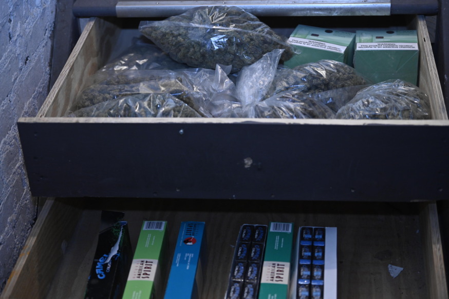 Officers entered the Gazzo Convenience shop located at 37-01 31st Ave. at around 10:30 a.m. and began a search of the premises. Officers found 400 to 500 cartons of untaxed cigarettes stashed in hiding places beneath the cellar stairs and behind trap doors in addition to many pounds of illegal marijuana and marijuana flower product, according to law enforcement sources at the scene.