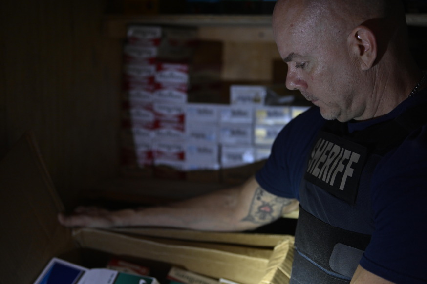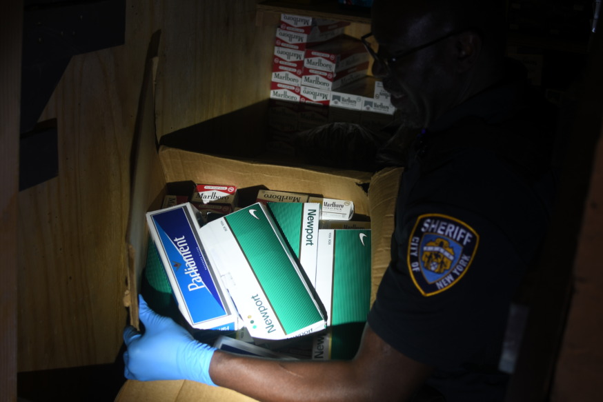 The NYC Sheriff’s Office raided an illegal smoke shop in the heart of Astoria on Oct. 20, seizing hundreds of boxes of untaxed cigarettes and illegal marijuana products. (Photo by Lloyd Mitchell)