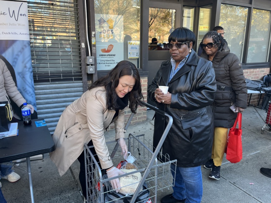 The generosity extended into Sunday, Nov. 19, when over 2,000 turkeys were given to residents at NYCHA Queensbridge Houses, Ravenswood Houses and Woodside Houses. Funding for this initiative came from Won’s office, with the turkeys donated by a host of community partners including Queens Together, Food Bazaar, Local 79/LIUNA and others.