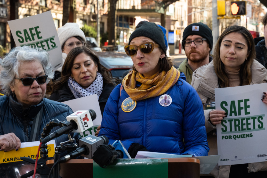 Surrounded by street safety advocacy groups and family members who lost loved ones to traffic accidents, Cabán said that every traffic-related death was preventable and described the plan as “full of common sense, easily executed infrastructure improvements that would save lives.