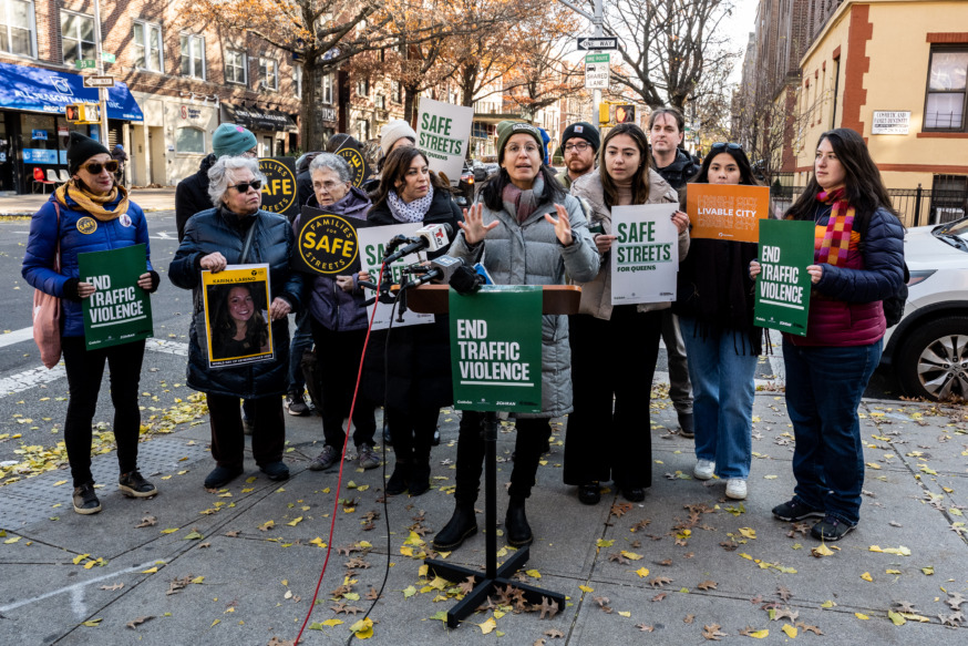 Surrounded by street safety advocacy groups and family members who lost loved ones to traffic accidents, Cabán said that every traffic-related death was preventable and described the plan as “full of common sense, easily executed infrastructure improvements that would save lives.