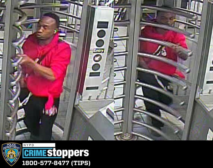 The NYPD released surveillance images of the suspect on Wednesday that shows him coming through the turnstile at the Queens Plaza station. He was described as having a dark complexion. He was last seen wearing a red hooded sweatshirt, black sweatpants and a black bag slung over his shoulder.