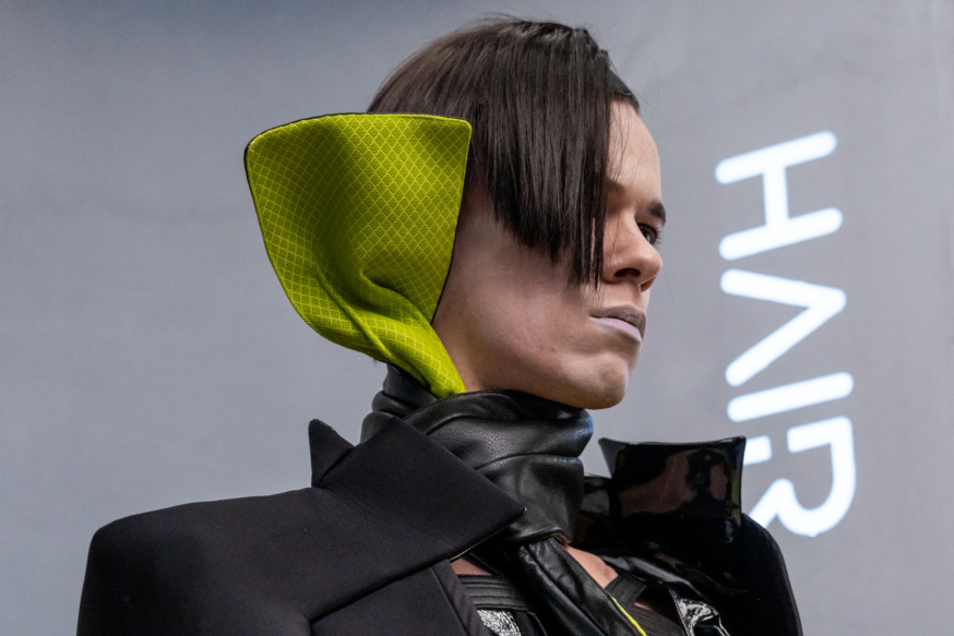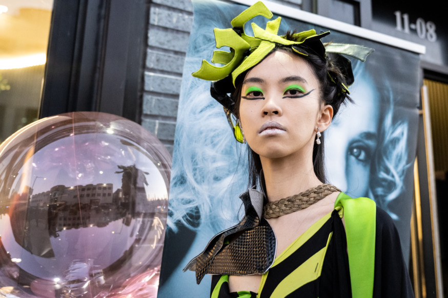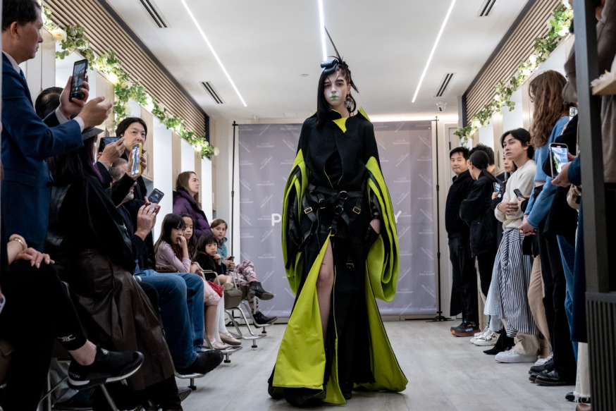 Fashion models present Alexander King Chen’s collection at the grand opening of Hair Philosophy LIC. (Photo by Gabriele Holtermann)
