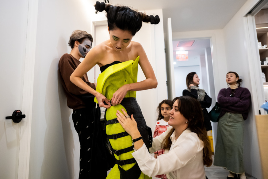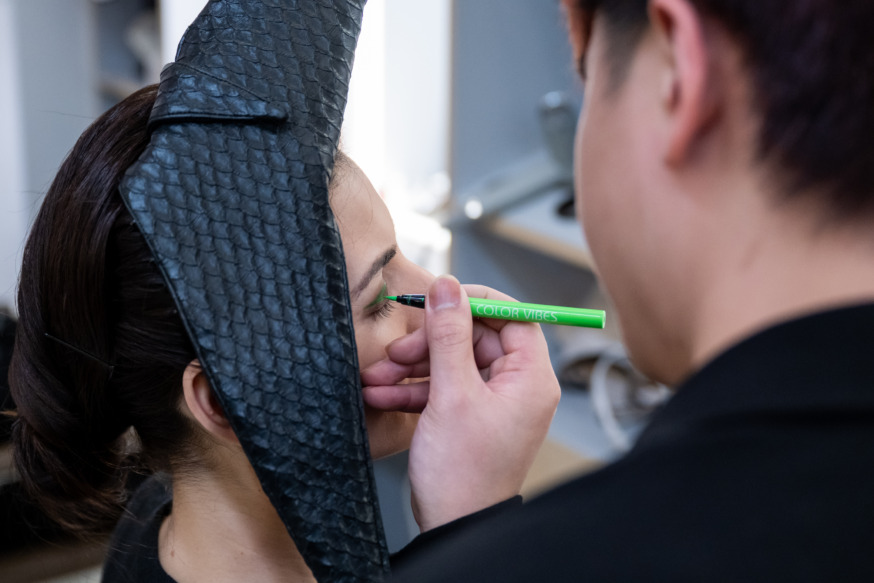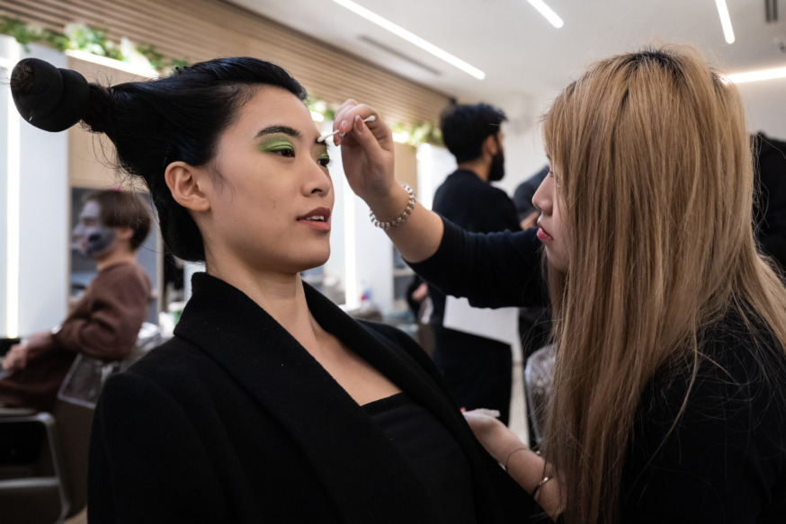 Fashion models get ready for the fashion show at Hair Philosophy LIC. (Photo by Gabriele Holtermann)