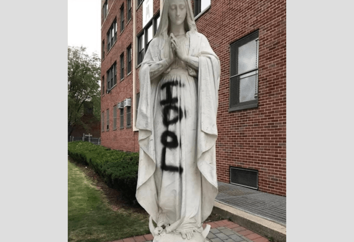 “The people of the parish of St. Andrew Avellino are saddened that events such as this are happening within our community and our city,” said Father Gregory McIlhenney, the parish pastor. “The parish will get through this experience, and we are determined to put the Blessed Mother back in her rightful place.”