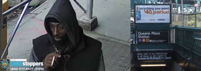 Police from the 108th Precinct in Long Island City and Transit District 20 are hoping the new surveillance image can provide a break in the investigation because it shows him having a smoke outside the Queens Plaza subway station without a mask providing a better look at his face.