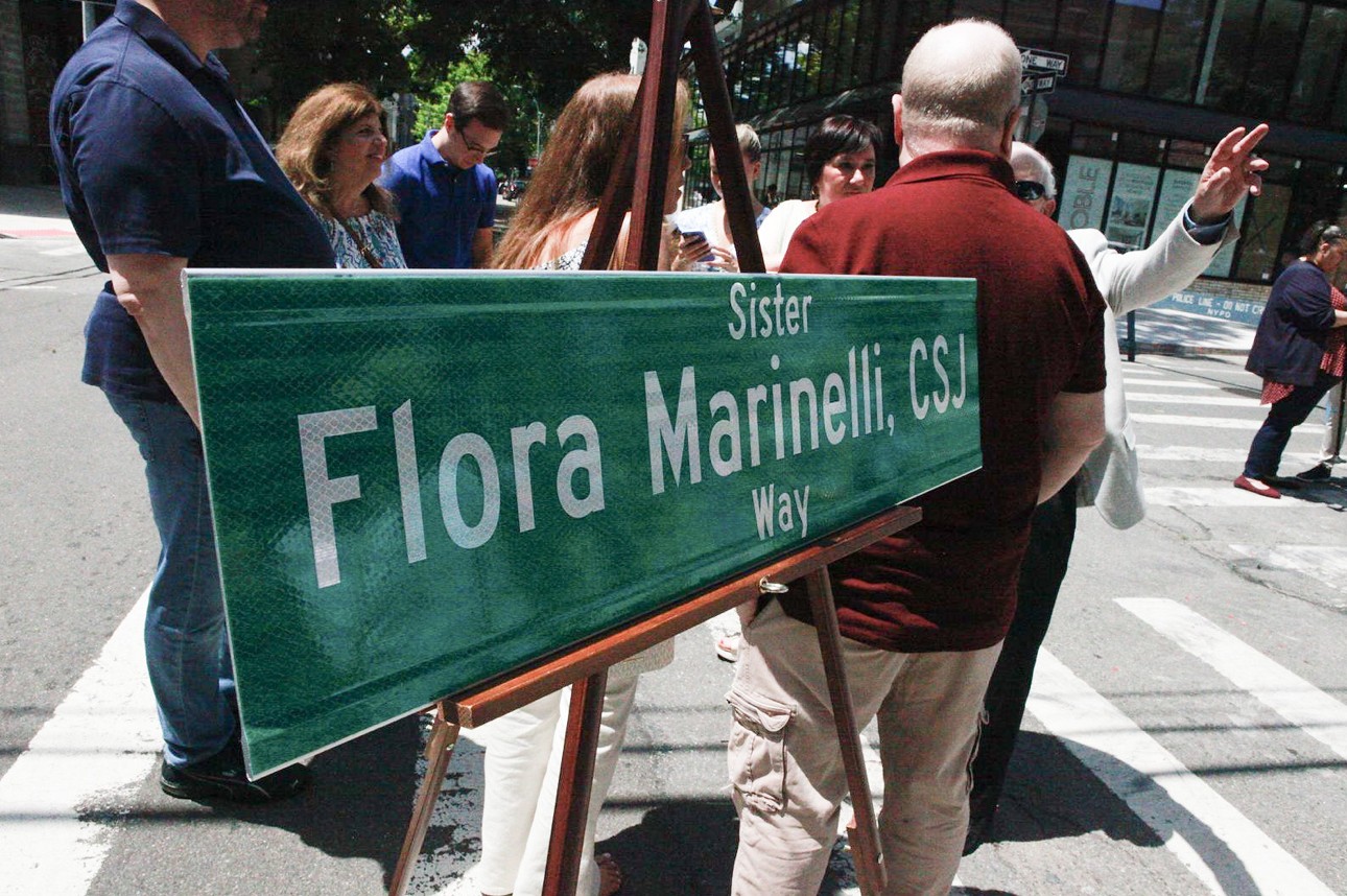 The street in front of where Sister Flora Marinelli lived as a devout member of the Sisters of St. Joseph for 35 years is now co-named in her honor.