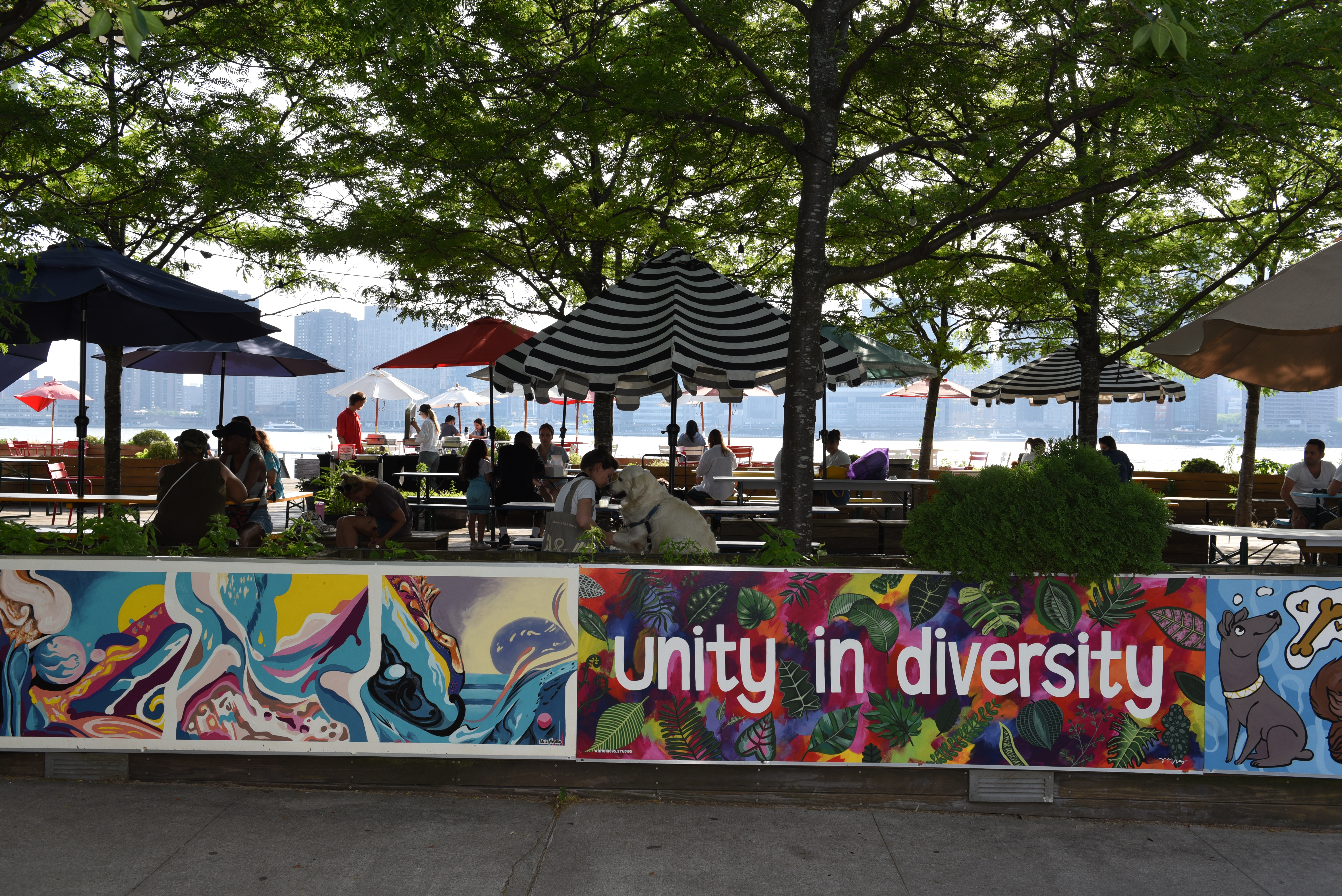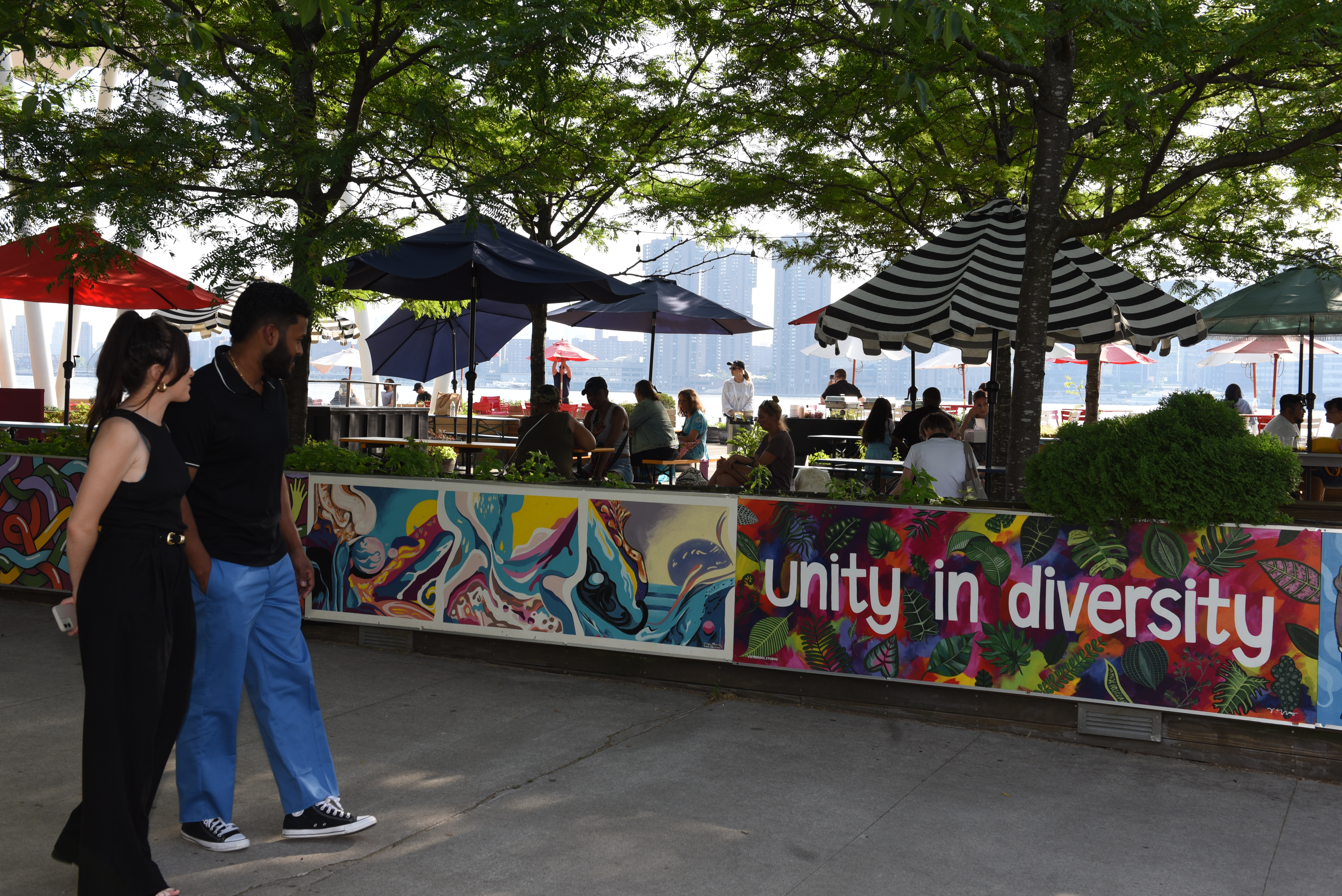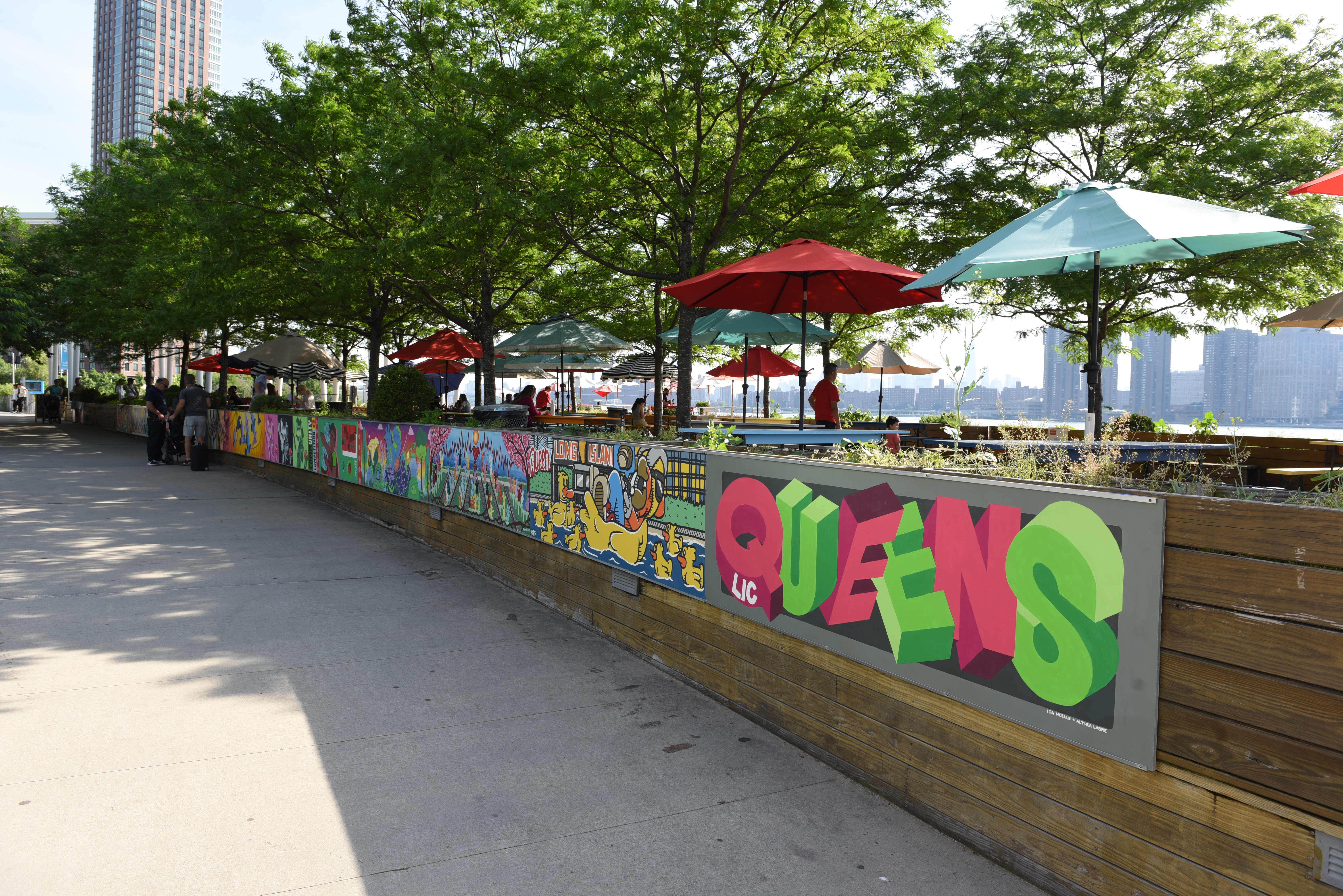 The first five murals were unveiled at the waterfront café last December, and seven more were unveiled at an event on Tuesday, June 4. Together, they create a visually stunning representation of Queens’ diversity and charm.
